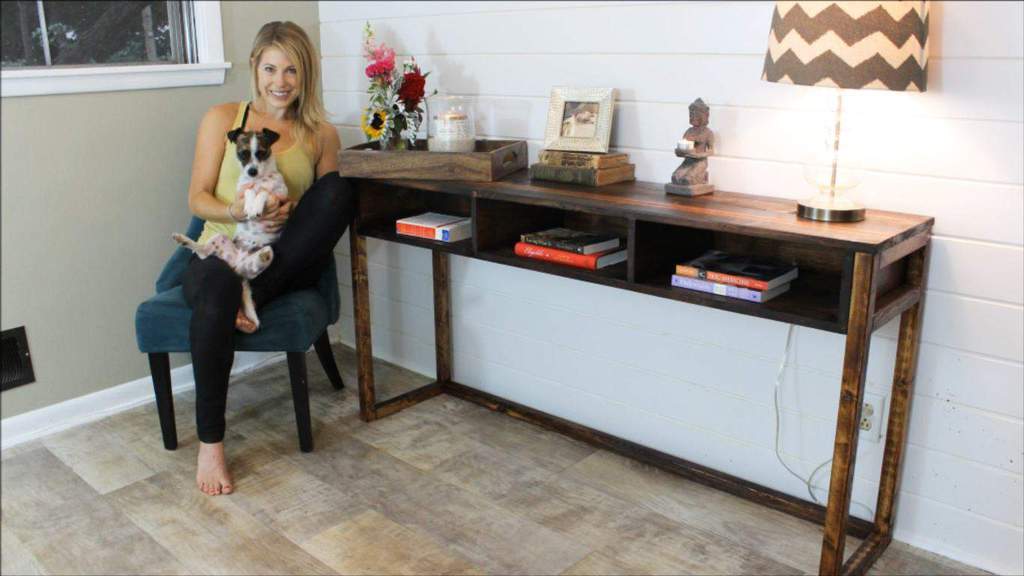 Then grab two 1”x4” x44” long pieces, and lay them across the two ends of the 17” boards. Just like the coffee shelf from my other How-To, make sure these boards are all nice and snug.